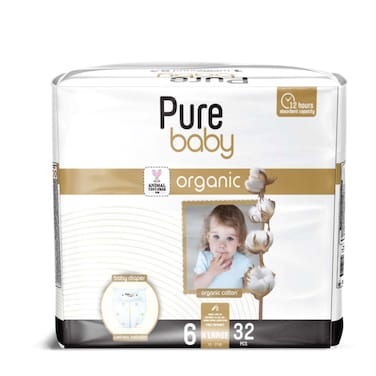 Pure Baby Diapers with Organic Cotton Core Size 6 (15-27 kg) 32 Diapers