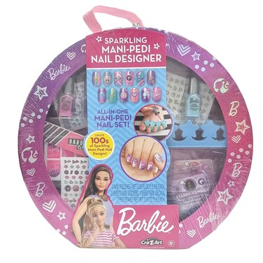 Includes barbie fashion nail polishes, iconic nail art stickers, scented pedicure soaks and more!