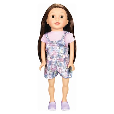 She has beautiful long hair that can be styled in various ways, and her bright blue eyes are full of life. Paige comes dressed in a cute and trendy outfit, complete with a stylish dress and matching shoes.