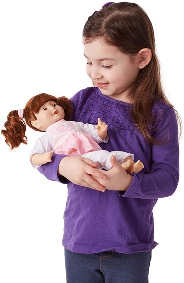 GIFT FOR 18 MONTHS AND UP: The Mine to Love Brianna baby doll toy is a great gift for kids ages 18 months and up. Add the Melissa & Doug Diaper Bag Set to round out the pretend play experience and give kids an engaging option for screen-free fun.