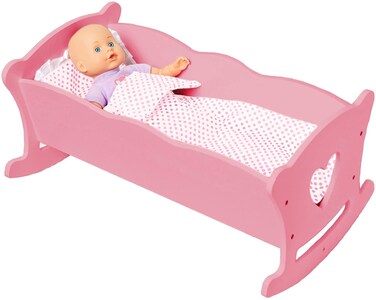 BEAUTIFULLY DESIGNED - Wildkin’s Doll Cradle features a classic rocker design with beautiful finishes. The heart cutouts are an adorable addition, while the included pink and white polka dot pillow and blanket create a sweet contrast with the timeless white cradle.