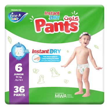 Fine Instant Dry Baby Diaper Pants Junior Size 6 15kg+ 36 Pants