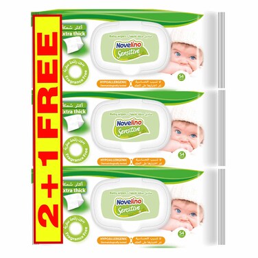 Novelino Sensitive Baby Wipes Fragrance 54 Wipes x Pack of 3