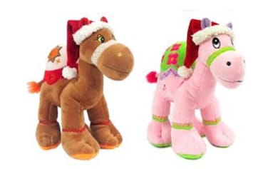 Bundle items - Brown camel with santa hat + Pink camel with santa hat 25cm.