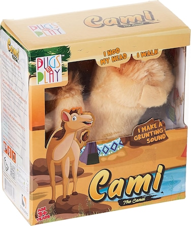 Pugs at Play Cami The Walking Camel features like walking, nodding head and making a humming sound. Helps improve hand-eye coordination and fine motor skills, can help kids make their first step into independence and provide much comfort and support.