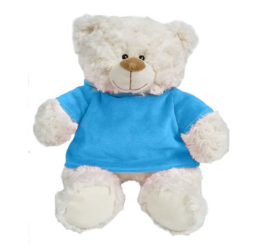 - Super soft fluffy bear with trendy blue velour hoodie, size 38cm.