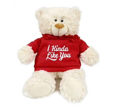 Caravaan, Supersoft, Cuddly Teddy Bear With Trendy Red Hoodie I Kinda Like You Size 38cm Ideal For Birthdays, Boys, Girls Parties Soft And Cuddly