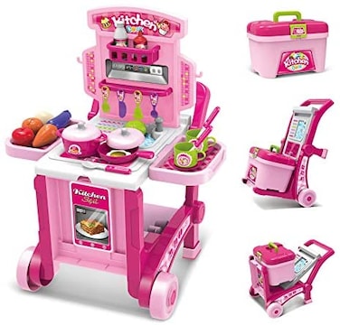 Easy Future Little Chef Kitchen Set Imports Deluxe Beauty Kitchen Appliance Cooking Play Set 3 In 1 Kitchen Play Set Pretend Play Luggage Kitchen Kit For Kids With Suitcase Trolley No008927