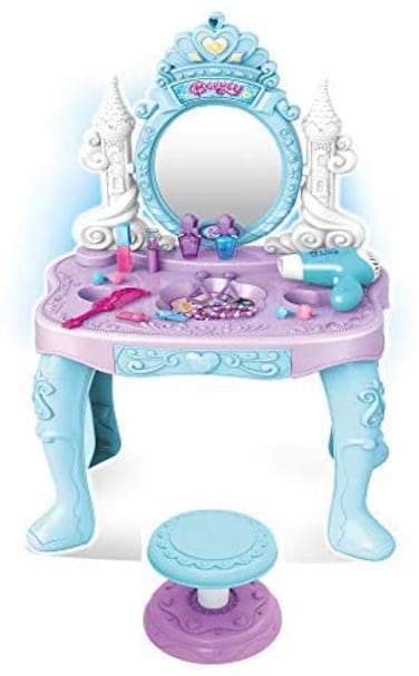 1.Rich Vanity Accessories and Big size The vanity table toy is equipped mirror and many accessories you will find accessories such as hair dryer comb lipstick head rope etc. The pink dressing table is dazzling at home passing by the mirror like a magic mirror . Item Dimensions77cm Height45cmLength30cm Width.Package Dimensions66cm Height45cmLength9cm Width. 2.Makeup for FunThe makeup kit playset is great early childhood education development toys It can develop children's intelligence independence and help to promote children's cognitive and imagination skills a complete set of makeup must allow children to enjoy the number hours of entertainment. 3.Childfamily interactionYou can interact with your child to let your child feel the warmth of home Your cute baby can also play a variety of games with you increase the emotion between parents and children and close to each other. 4.Safe MaterialsThe toy makeup set is made with high quality ecofriendly safe materials. It has smooth edges that ensure your childs safety throughout their playing. Its a great way for kids to explore creativity and build skills. 5.Exquisite giftOur toys made of safe and nontoxic materialit have a beautiful packaging gift box is the PERFECT GIFT for any occasion is the perfect childhood toy for childrenyou can give it as a festivalbirthdayparty gift to a friend or family Member.can also bring friends and relatives closer to each other.