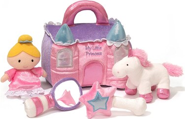 GUND wants to make playtime a more huggable experience ù The Princess Castle Playset is perfect for inspiring magic and imagination! This five-piece play set includes a glittery pink castle carrying case with purple accents and touch-and-close fasteners.