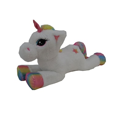 The HK Lying Unicorn Soft Toy in White is a cuddly and adorable plush toy measuring 85cm in length.