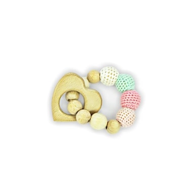 Snuggle and Play Handmade Crochet Teether With Wooden Heart Braclet