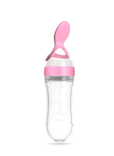Silicone Squeeze Bottle Spoon Baby Feeding Bottle Toddler Food Feeder Dispensing Spoon Suction Cup Design Feeder-Pink