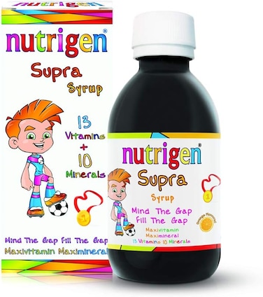 Micronutrients of different kinds and from various sources are important in supporting growth and development of a child. Rapid growing children need more micronutrients. Vitamins and minerals support the healthy development of tissues and improve normal healthy activity of body systems. Supra syrup is maxi-vitamin and maxi-mineral syrup that supplies all necessary micronutrients that gets your children well over average. Set Contains: 1 x 200 mL bottle