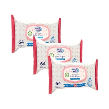 Cool & Cool 99 Percent Water Content Baby Wipes White 64 Wipes Pack of 3