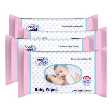 Cool & Cool Baby Wipes White 72 Wipes Pack of 4