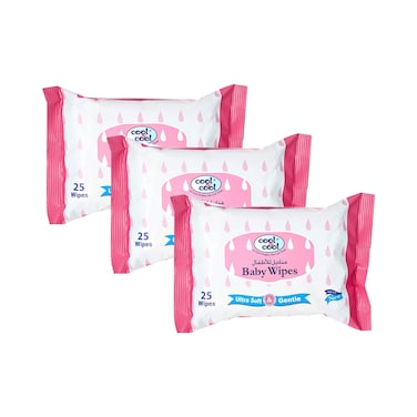 Cool & Cool Ultra Soft And Gentle Baby Wipes White 25 Wipes Pack of 3
