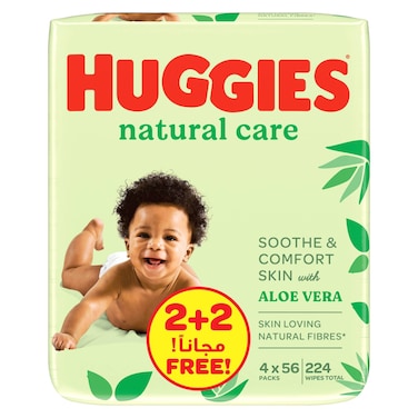 Huggies Baby Wipes Aloe Vera Green 56 Wipes Pack of 4