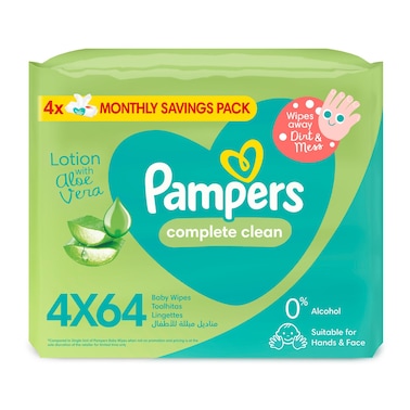 Pampers Complete Clean Baby Wipes With Aloe Vera Lotion 4 Packs 256 Wipes