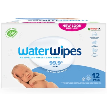 Water Wipes Purest Baby Wipes White 60 Wipes Pack of 12