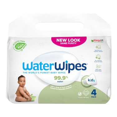 WaterWipes Baby Wipes with a Drop of Fruit and Berry 60 Wipes Pack of 4