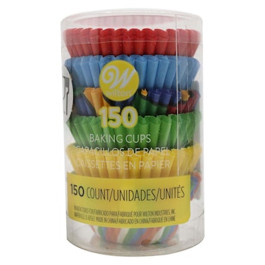 The Wilton Mini Baking Cups Multicolour 150 PCS are perfect for adding a pop of colour to your homemade cupcakes or muffins.