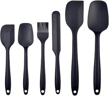 Upgrade your kitchen toolkit with our Silicone Spatula Set - a 6-piece non-stick rubber spatula set designed for all your cooking, baking, and mixing needs. This versatile set includes a variety of spatulas, each crafted to handle different tasks with ease and efficiency.Ergonomic Design - Each spatula in the set features a one-piece design, offering increased stability and durability. The ergonomic handles provide a comfortable grip and precise control, making them perfect for a wide range of kitchen tasks.Hygienic and Safe - Made from solid silicone, these spatulas are 100% BPA-free and have seamless surfaces, eliminating crevices where bacteria can collect. The premium quality ensures they are firm enough to mix both wet and dry ingredients effectively. Reinforced with stainless steel for extra strength, they are built to last and keep your kitchenware looking new.Easy Cleanup - These spatulas are completely dishwasher safe, allowing for hassle-free maintenance. They can be cleaned just like any other cooking utensil, either by hand or in the dishwasher. Avoid using abrasive cleaning pads to preserve the silicone surface.High Heat & Non-Stick - Safe for use with non-stick pots and pans, these silicone spatulas won’t transfer any unpleasant tastes to your food. Resistant to rust and discoloration, they maintain their sleek appearance over time. With very high melting points, these spatulas can handle extremely hot mixtures and remove food directly from heat sources without damage.Versatile and Multi-functional - This set is perfect for a variety of kitchen tasks, including cooking, baking, and mixing. The different sizes and shapes ensure you have the right tool for any job, making them essential additions to any kitchen.Set Includes: 1 Large Spatula 1 Medium Spatula 1 Small Spatula 1 Spoon Spatula 1 Jar Spatula 1 Mini SpatulaEnhance your cooking experience with our Silicone Spatula Set. Combining ergonomic design, hygiene, durability, and versatility, this set is designed to meet all your culinary needs.
