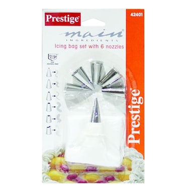 The Prestige Icing Bag Set With Nozzles PR42401 Silver Pack of 6 is a must-have for any baking enthusiast.