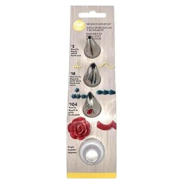 The Wilton Decorating Tip and Coupler Set 4 PCS is a must-have for any baking enthusiast. This set includes four different decorating tips, allowing you to create a variety of designs on your cakes and cupcakes. The tips are made of durable stainless steel, ensuring that they will last for years to come. The set also includes a coupler, which makes it easy to switch between tips without having to change the piping bag. Whether you're a beginner or an experienced baker, this set is sure to enhance your decorating skills.