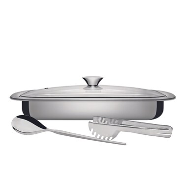 4 pcs Stainless Steel Serving Set with Glass Lid 34 cm