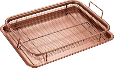 Copper Crisper Tray Non-Stick Oven Baking Tray with Elevated Mesh Crisping Grill Basket