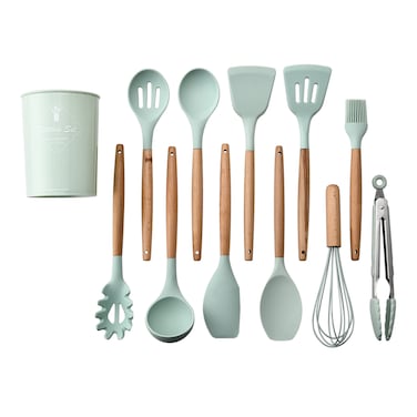 This high-quality non-stick silicone and wooden kitchen tools set means no more melting plastic kitchen accessories. The silicone heads can withstand temperatures ranging from -22°F/-30°C to 392°F/200°C. Their easy-to-grip, comfortable handles, and balanced weight make cooking a joy and their large hanging holes help keep your cookware set orderly and organized.