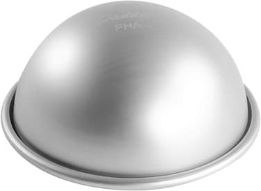 Spend less time carving cakes and get to the decorating sooner. Fat Daddio's Hemisphere Pan allows you to create perfect hemispheres, sports balls, planets, pumpkins, zuccotos, igloos, owls, lady bugs, baby bumps, ice cream molds, mousse and more curvy creations. Will never rust, chip, flake or peel. Hand wash recommended.