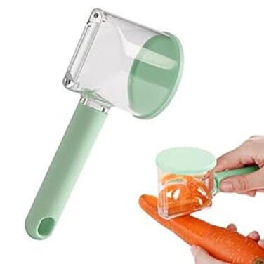 The Fitto Functional Peeler is a versatile kitchen tool designed to make peeling fruits and vegetables effortless and mess-free. This innovative peeler comes with a built-in container to catch peels, reducing kitchen cleanup time. Suitable for a wide range of fruits and vegetables, it's crafted for efficiency and ease of use. The vibrant green color adds a pop of brightness to your kitchen, while its compact design ensures it fits comfortably in your hand and stores easily in any drawer. A must-have for any home cook looking to simplify meal prep.
