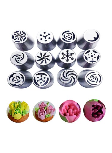 Generic 12-Piece Tulip Tips Icing Piping Nozzles Set Silver 20Centimeter