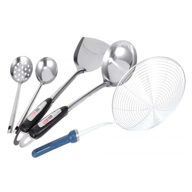 <li></b><li>5 Pieces kitchen utensil set<li>Made of stainless steel<li>Material : Stainless Steel<li>Type : Cooking Utensil Set