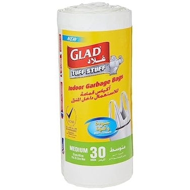 Glad Tuff Stuff Garbage Bag Medium White Handle Bags, Size 55 cm x 60 cm, 30pcs