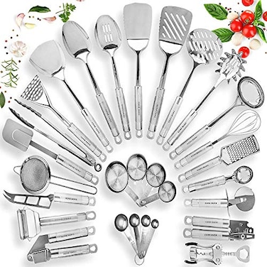 Home Hero Stainless Steel Kitchen Utensil Set - 29 Cooking Utensils - Nonstick Kitchen Utensils Cookware Set With Spatula - Best Kitchen Gadgets Kitchen Tool Set Gift