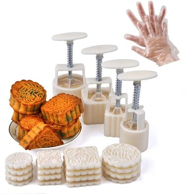 Mid-Autumn Festival Moon Cake Mould Hand-Pressure Flower Cookie Stamps With 16 Pcs Mode Pattern For 4 Sets