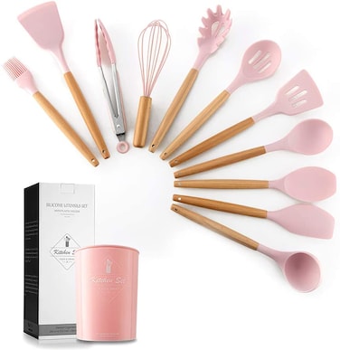 Silicone Cooking Kitchen Utensils Pink 11PCS