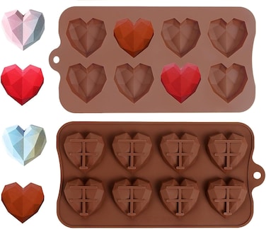 8 Cavity Diamond Heart Shape Silicone Chocolate Moulds 3D Love Diamond Wax Melt Moulds,Silicone Mould for Handmade DIY Cake Chocolate Jelly Ice Cube