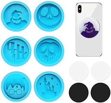 Generic 10 Pieces Phone Grip Epoxy Resin Molds, Theme Badge Phone Grip Resin Molds, 6 Pcs Circle Shaped Silicone On Top Phone Molds With 4 Pcs Phone Sockets For Diy Crafts Jewelry Making