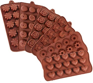 PRODUCT DESCRIPTION: Set of 6 Ausplua flower silicone baking molds: Our silicone mold set including 5 pieces different flowers blossom shapes such as rose, tulip, sunflower, chrysanthemum, lotus, plum flower and rose in bloom.,and 1 piece heart shape silicone chocolate molds,you can make more desired flower and heart sweets at a time with these candy molds. There are 15-cavity flowers on each mold,they are 100% food grade quality, non-toxic environmental protection,heat-resistant temperature is -104F to 446F (-40C to 230C), safe for use in the oven, microwave and dishwasher, dishwasher and fridge. Flower Baking Molds Specifications: Temperature Range: -40 to 446F(-40 to +230C) Size: around 8.25x4.13x0.6in one each mold Cavity:15 on each mold Color: Brown Package List: 5x Silicone chocolate flower molds 1xsilicone heart molds Notes: 1,Do not touch the fire directly or near a heat producer (such as an oven heater). It is recommended that you place the mold on the middle or upper side of the oven during baking, keeping a distance of at least 5cm from the heating pipe. 2,Do not use the “Crisp” button of the microwave oven. 3,It may have slight color difference of each mold 4,Please allow 0.5-1cm errors due to manual measurement