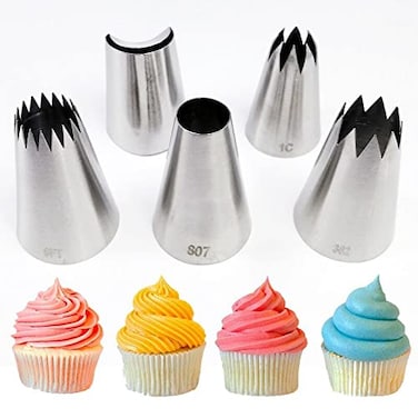 - <p>MATERIAL, Stainless steel COLOR: Silver SIZE: As the picture NUMBER OF PIECES: 5 BRAND: BHjoybeauty CAKE DECORATING TIPS: 1C 362 402L 807 8FT Large piping nozzles, There are different shapes of decorating tips, which can satisfy you to create various types of patterns on the cake. USE: The set of most commonly used decorating tips to DIY different beautiful flower decorations on your birthday cake, wedding cake,cupcake,desserts,biscuits,pastry,puffs and cookies FIT FOR: Suitable for professional use or baking lover DIY or kids beginnersGIFT: Suitable for all kinds of occasions like birthday,Mother’s Day,Father's Day,Christmas, housewarming, family party, festival parties,anniversary, graduation ceremonies,Opening CelebrationSEAMLESS AND STURDY: Our nozzles made from 304 grade stainless Steel, easy to sanitize and extremely resistant to corrosion. Each nozzle is cast in such a way that there is no seam