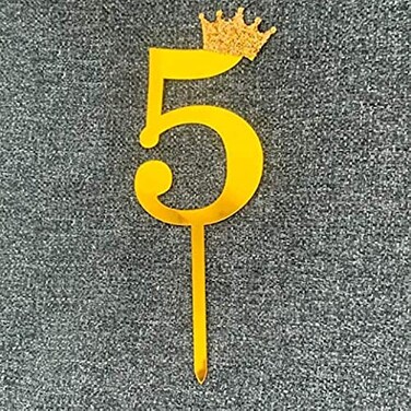 High-quality food-safe acrylic material. Non-toxic and safe for cake decorating use. Number 5 (Five), make your cake decoration more pretty. 5th Birthday cake topper or 5th-anniversary celebration Cake topper - Big Size Number 5 Cake Topper Perfect cake picks for birthday, wedding, engagement, party, and other festival occasions. Great accessory for cupcakes, cakes, ice cream, meat, cheese, and any dish you want to dress up. - Color: Golden - Material: Acrylic - Size: 18cm Height x 7cm width (Big Size)