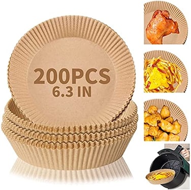 Generic Air Fryer Disposable Paper Liner, 100Pcs Non-Stick Disposable Air Fryer Liners, Baking Paper For Air Fryer Water-Proof, Oil-Proof, Parchment For Baking Microwave (200 Pcs 16 Cm, Nature)