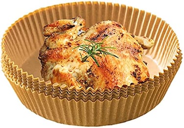 50PCS Air Fryer Parchment Paper Liners Non-Stick Disposable Paper Tray Barbecue Plate Food Oven Kitchen Round Baking PaperColor: natural colorSize: diameter 20cm, height 4.5cmMaterial: baking oiled paperQuantity: 50pcsPackage includes:50 per box air fryer paperFeatures:<< Good quality: It is made from good quality material, nontoxic, odourless, high temperature resistant, grease proofing, non stick and waterproof.<< Practical: Waterproof and grease proofing paper keeps air fryer free from food residue, saving time and effort.<< Disposable: Just throw away the paper liner after use. No need to clean the fryer anymore.<< Wide application: It is suitable for air fryer, microwave, oven, steamer, cooker and so on.<< Multipurpose: Can be applied for baking, roasting, frying, daily cooking and so on, suitable for home baking, kitchen cooking and so on, compact design and practical.