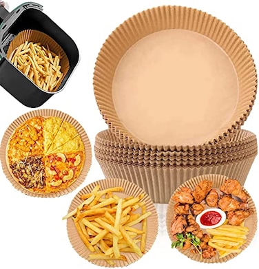 Features: Food Grade, Waterproof, Oil-proof, Non-stick Inside Diameter: 16cm/6.3in Outer Diameter: 20cm/7.9in Height: 4.5cm/1.8in Package Includes: 50Pcs Air Fryer Disposable Paper Liner These paper liners are must-have if you hate cleaning after baking. These disposable paper liners can effectively keep food residue away from the fryer and make it as clean as unused, saving time and effort. Using food-grade parchment, it is waterproof, oil-proof, non-stick, 100% healthy, and with nice heat resistance, can withstand temperatures up to 428 degrees Fahrenheit. These non-stick disposable air fryer liners are designed with a round bowl shape, which does not need to tear, fold, cut, or bend, and you can directly put them in when you are ready to cook. The paper liners can be applied for baking, roasting, frying, or serving food, suitable for home baking, camping, BBQ, summer party, and so on, lightweight and practical.