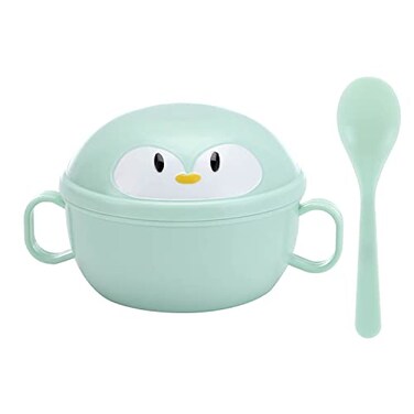 Generic Baby Feeding Bowls With Spoons Stainless Steel Baby Bowl Penguin Baby Food Container Soup Snack Dinnerware With Handles For Infant Toddler Kids (Green)