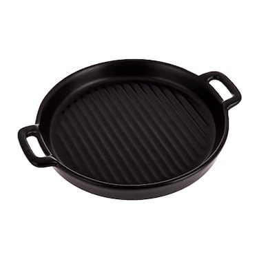 This round-shaped plate with handles comes with grill lines. Designed for optimal cooking and baking, it can be used for baking and grilling dishes in the oven. The grill plate is made from high-quality, durable, and non-toxic ceramic. It can also be used to serve pizza, pasta, fish, snacks, appetisers, etc. Easy to wash and clean.